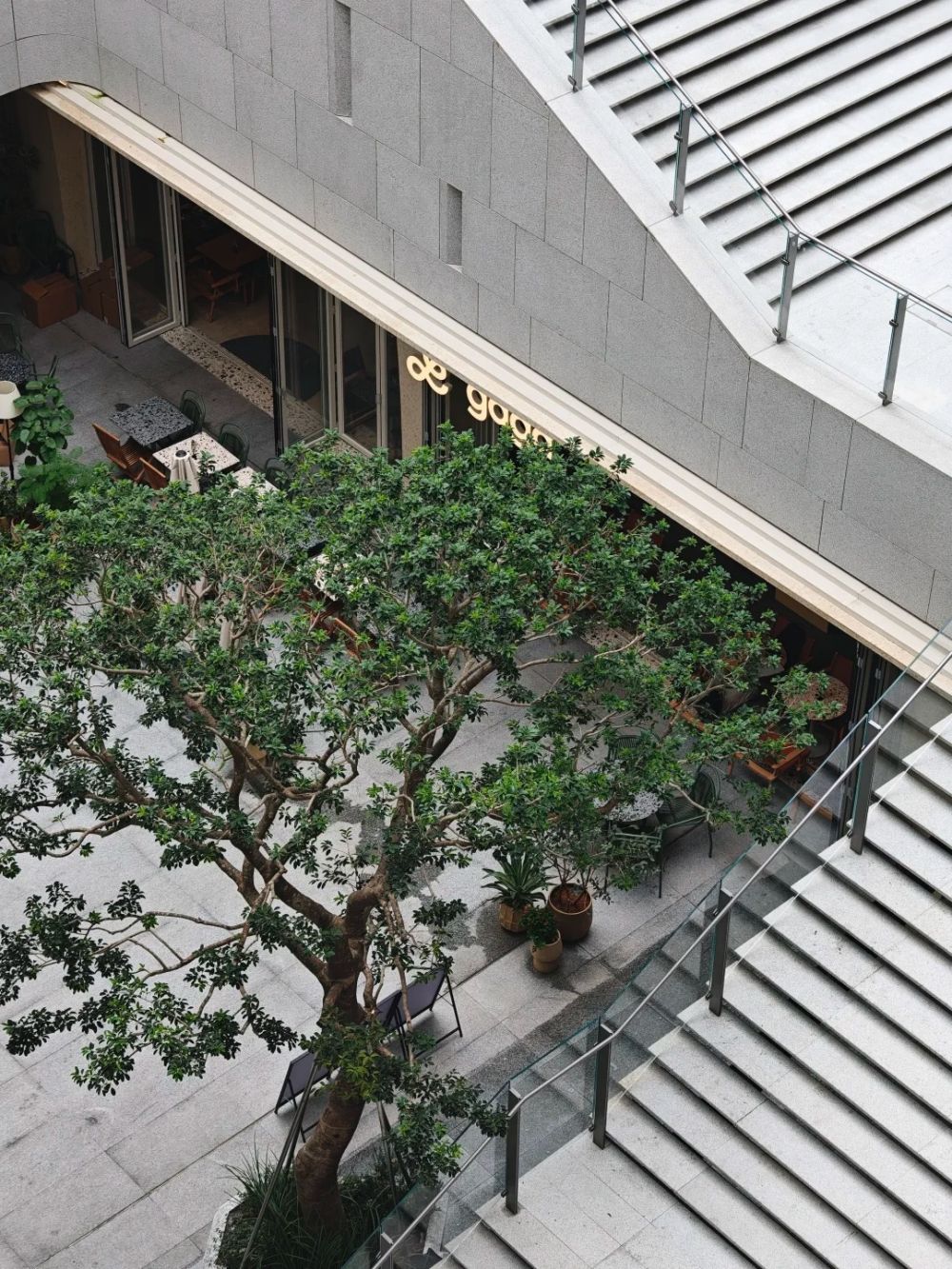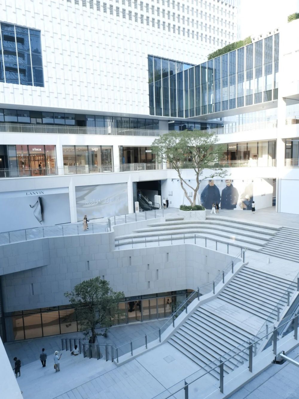 建筑采用“三廊五院”的创新形态,融合盒子Mall与院落式街区,创造出开放、舒适且充满自然气息的空间体验。地面和地下通过错落布局的店铺与休憩区,打造“日间社交、夜间赏景”的院落空间,让商业体成为城市公共生活的重要容器。