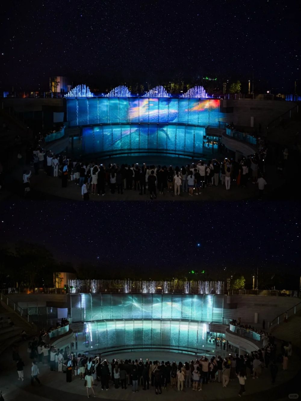 水幕广场以“春风的褶皱”为灵感打造金属纱帘水幕,成为艺术与商业结合的重要载体。定期上演AI烟花秀、BAY MUSIC、BAY TALK、光影秀等活动,吸引大量市民驻足观赏,成为拉动客流与消费的重要引擎。