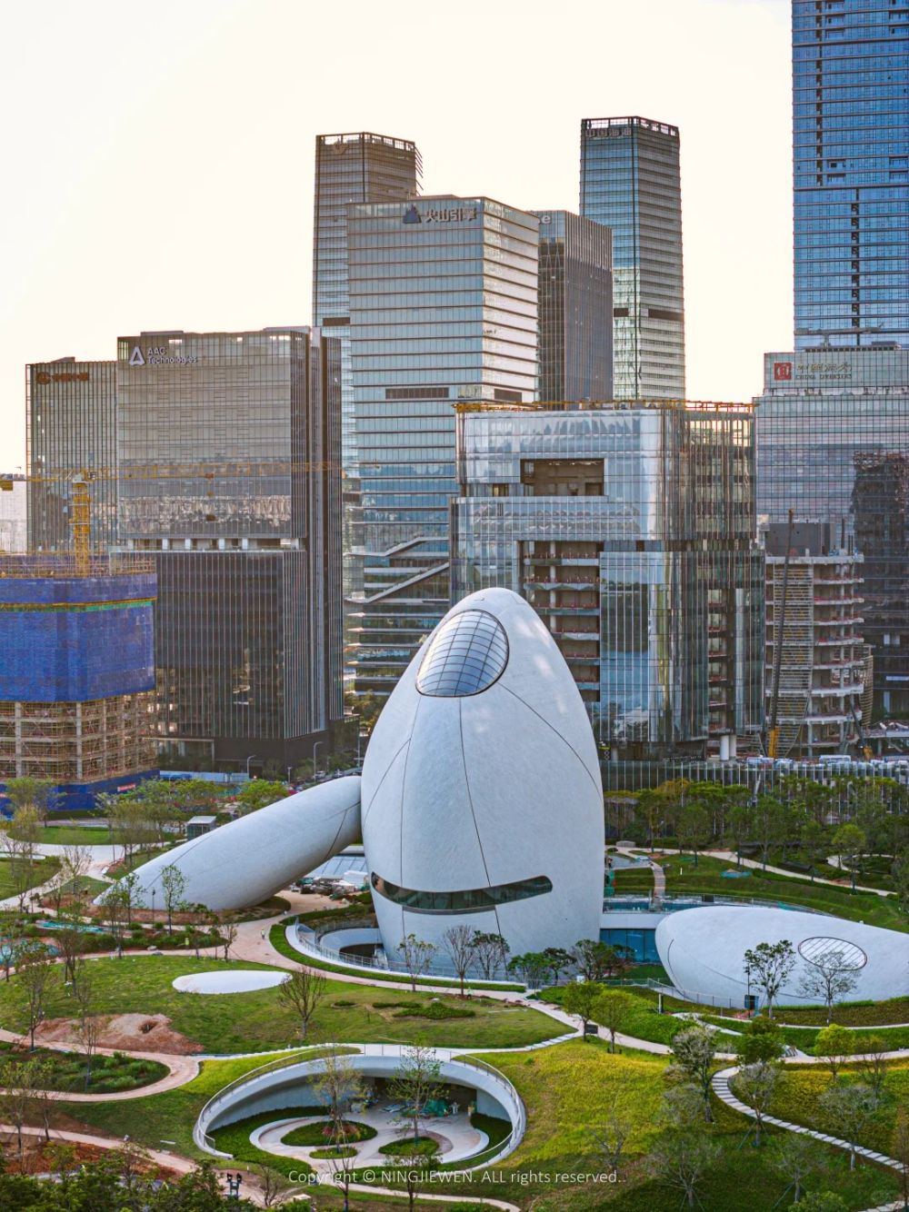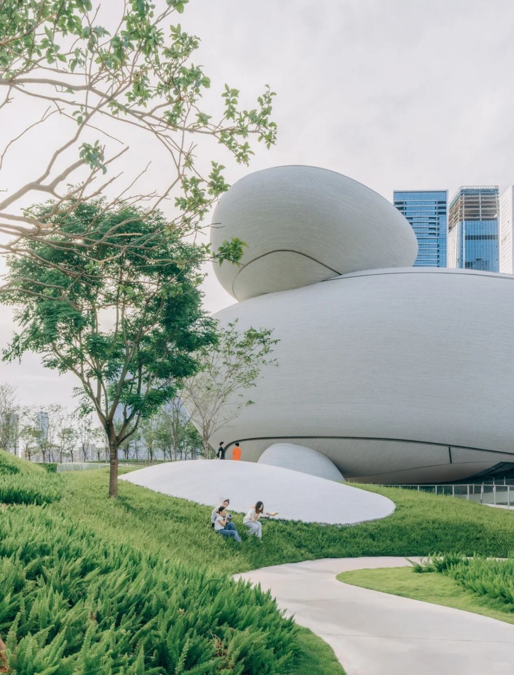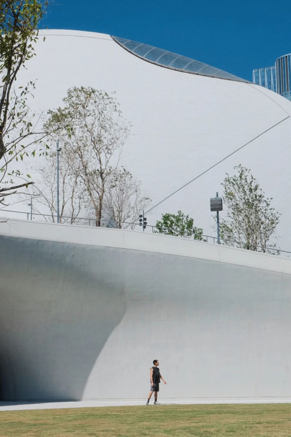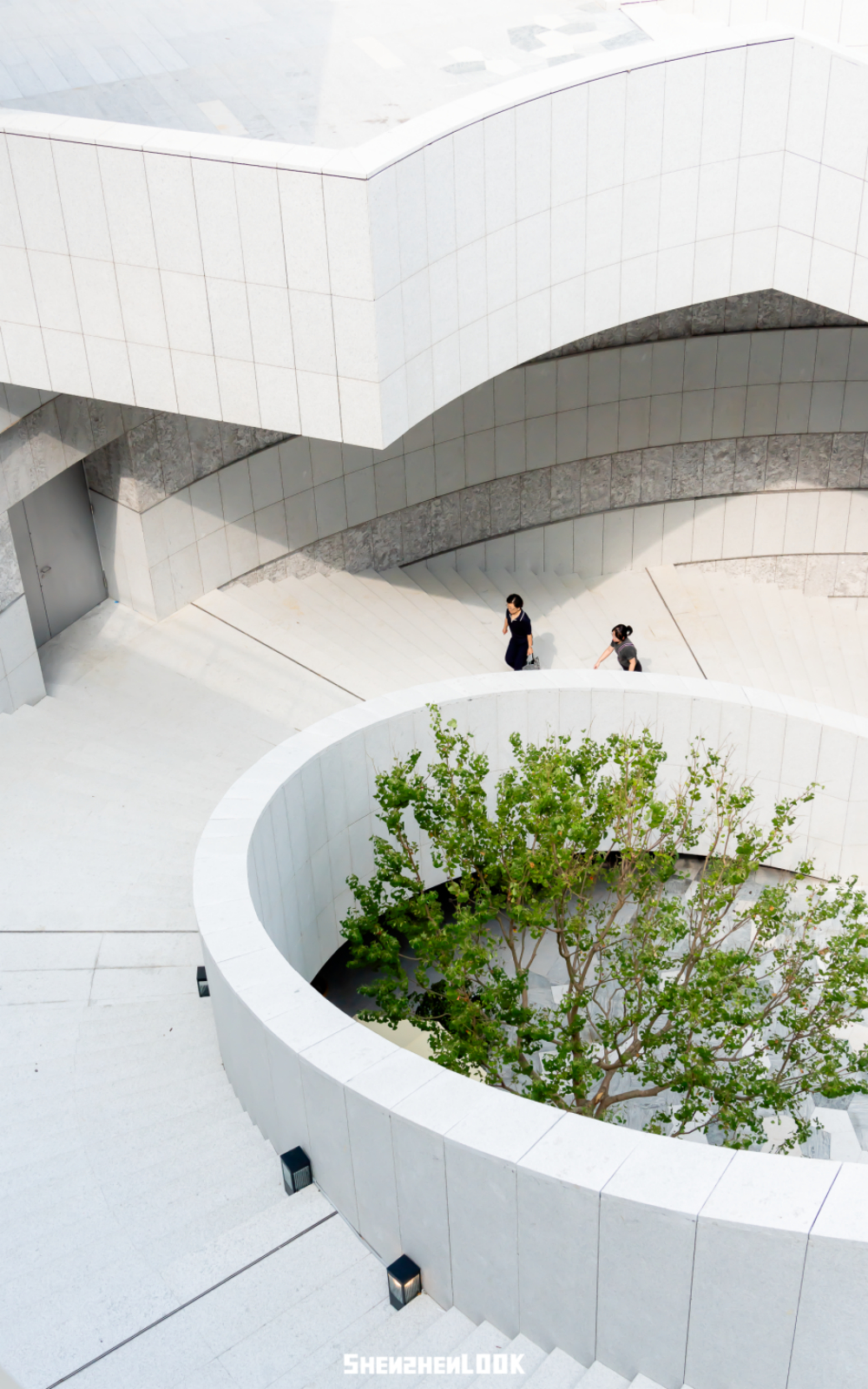 深圳湾文化广场(11月1日正式开放),占地面积约5.1万平方米,总建筑面积18.8万,由马岩松领衔的MAD建筑事务所设计,华润置地代建运营的重大文化设施,由北馆、南馆和主题馆组成,设有设计艺术展览、未来设计学苑、多元文化空间、跨界社交聚落四大功能场域。