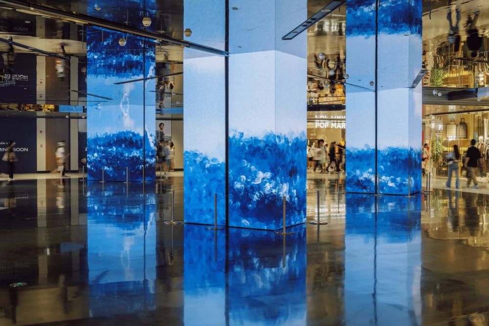 地面层重点打造的两大标志性场景——WAVE广场与水幕广场。