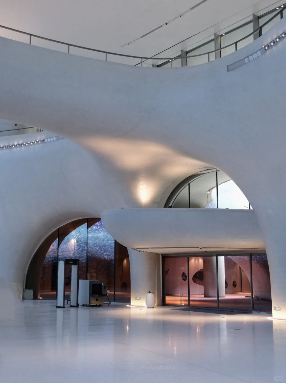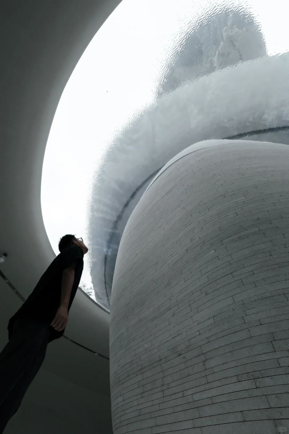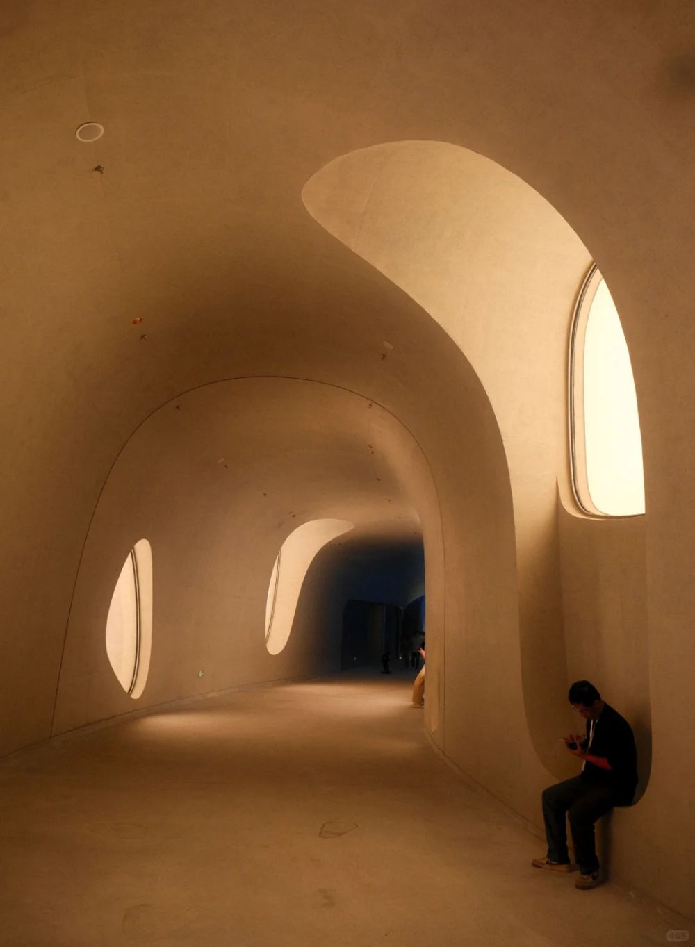 空间组织上,采用了“功能嵌入自然”的策略。展厅、图书馆、咖啡厅、学术报告厅等功能空间均被嵌入地下或半地下,首层则以通透的玻璃界面与城市对话。下沉庭院与屋顶绿地构成了多层次的公共空间系统,使建筑不仅是文化的容器,更是城市生活的发生地。