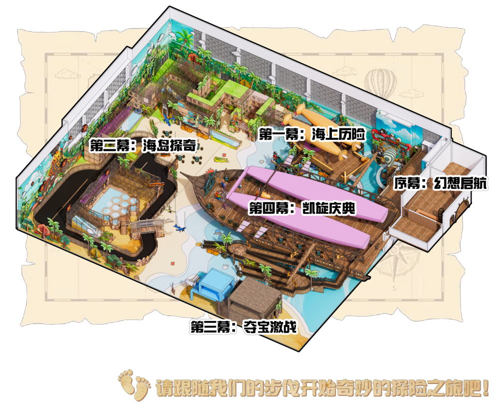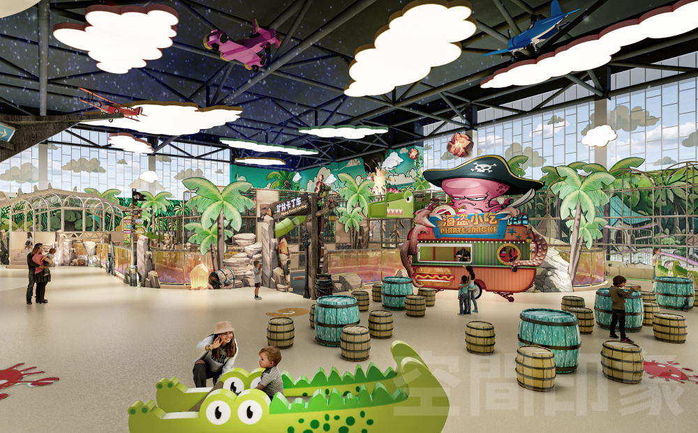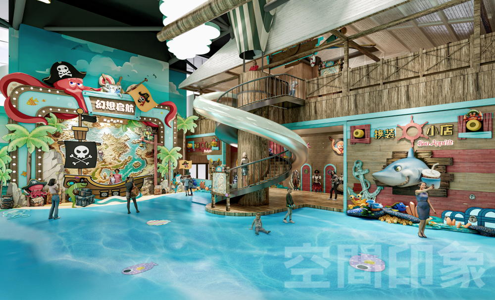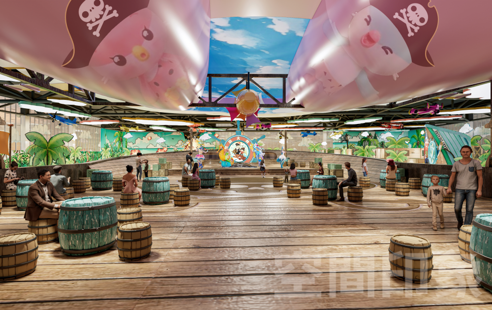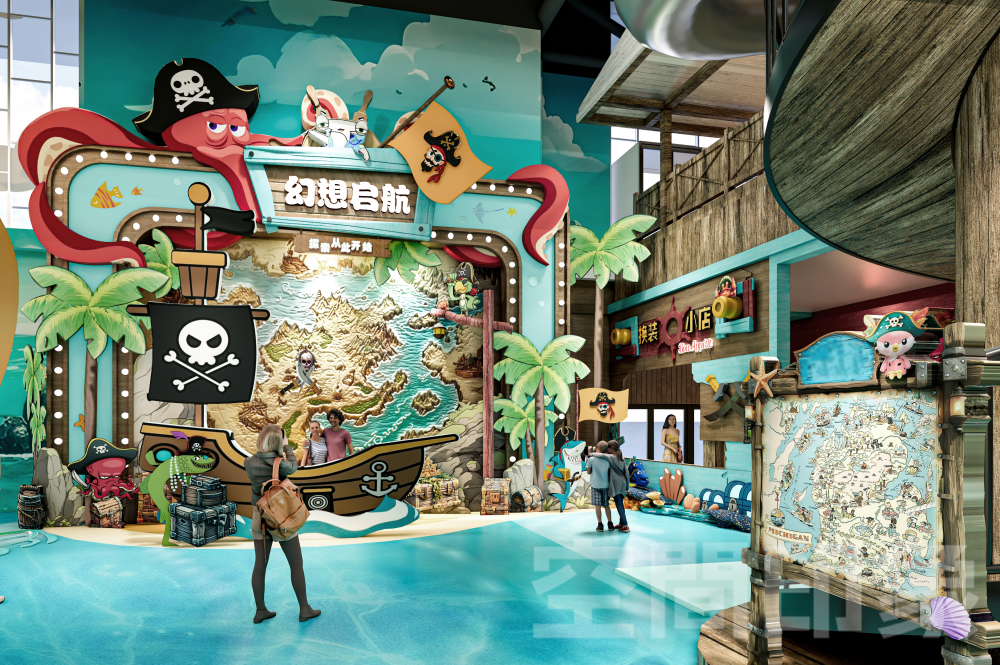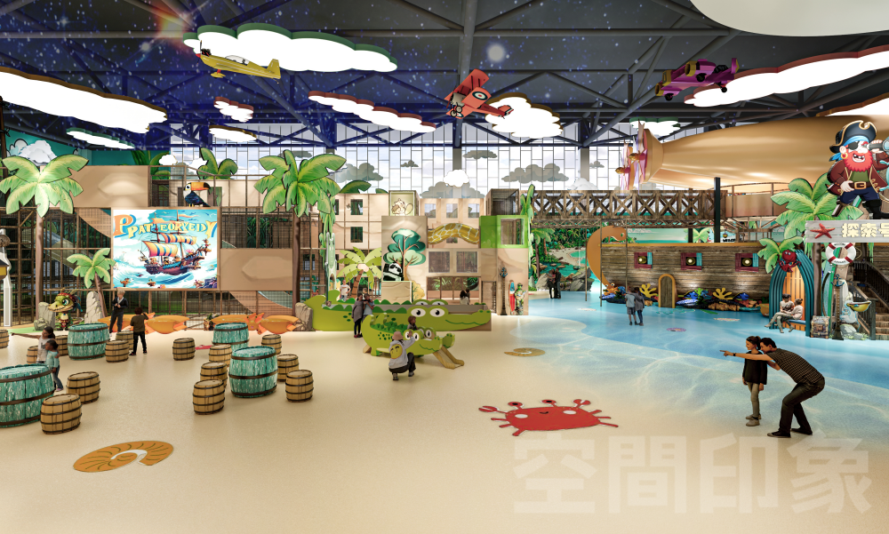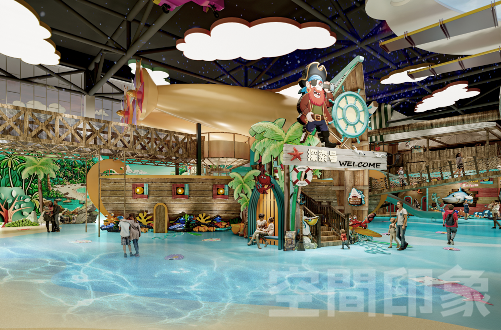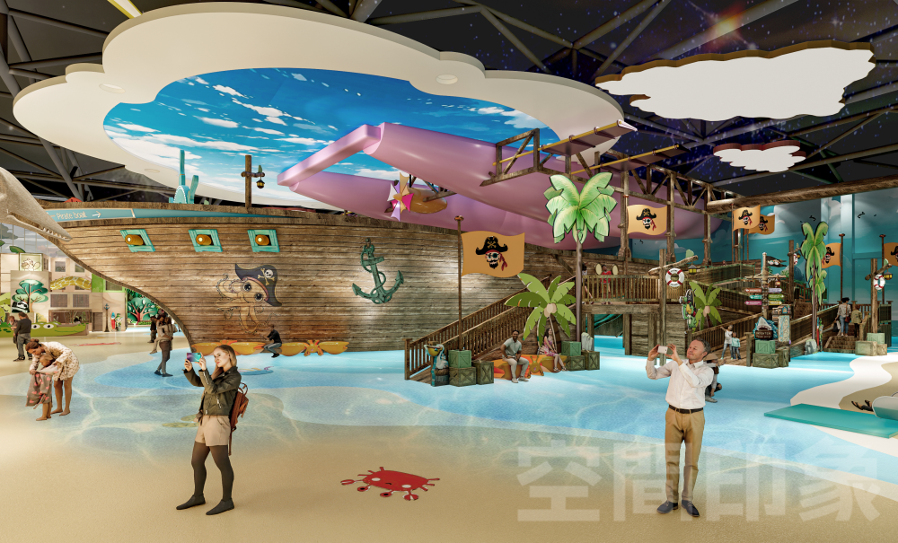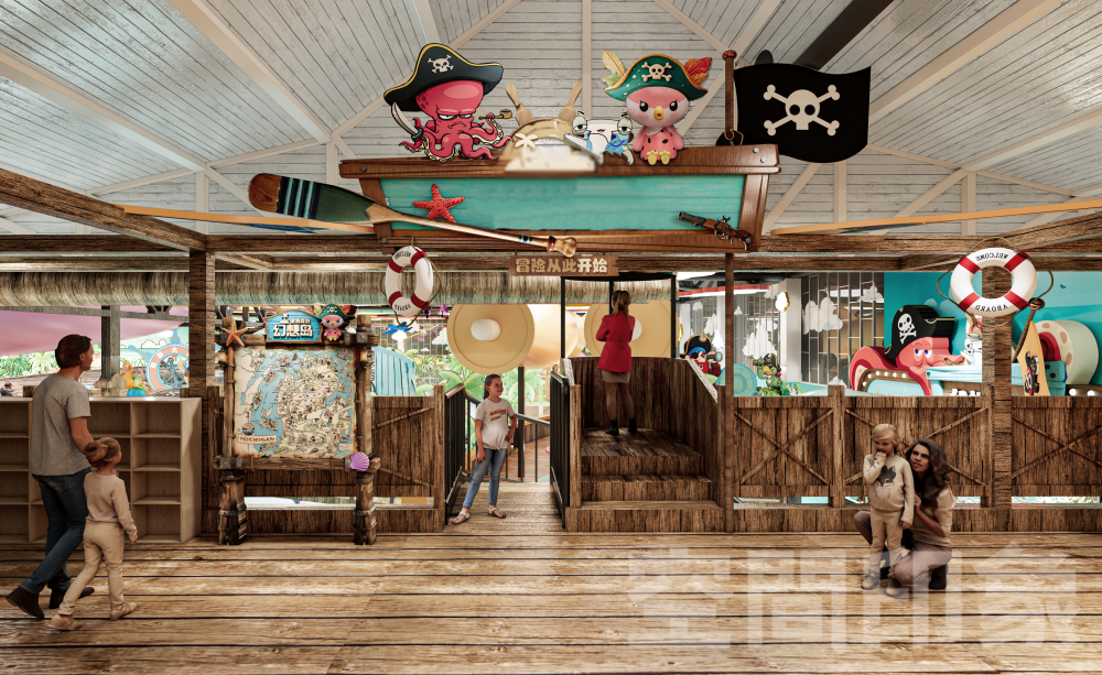 为了冲出室内乐园市场的重围,我们致力于以“四维沉浸”驱动消费增长,通过空间情景化重构+内容剧情化升级+运营戏剧化演艺,让内容与场景彼此加乘、互相成就,将传统游乐场进化为“孩子可欢乐、家长可参与、商业可持续”亲子共演共乐互动沉浸游玩生态,打造全天候、全客层、多感官的海盗航海冒险主题•互动式剧场式室内乐园。