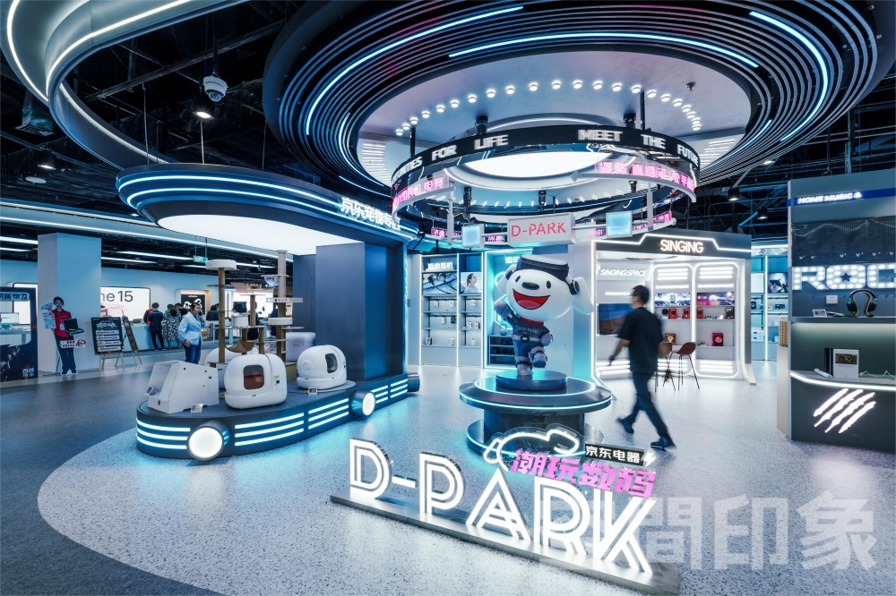 #宁波京东MALL 仅以600元/㎡的造价完成 “低成本、优质量、高回报” 的盒子商业同质化、自我同质化难题,融入宁波城市特色,重新演绎JD品牌符合,在空间设计上注重与场景、体验、科技、产品、服务的结合,基于新零售业态形式,提供前卫的新场景消费体验,打造出具有未来科技感的沉浸式商业综合体。