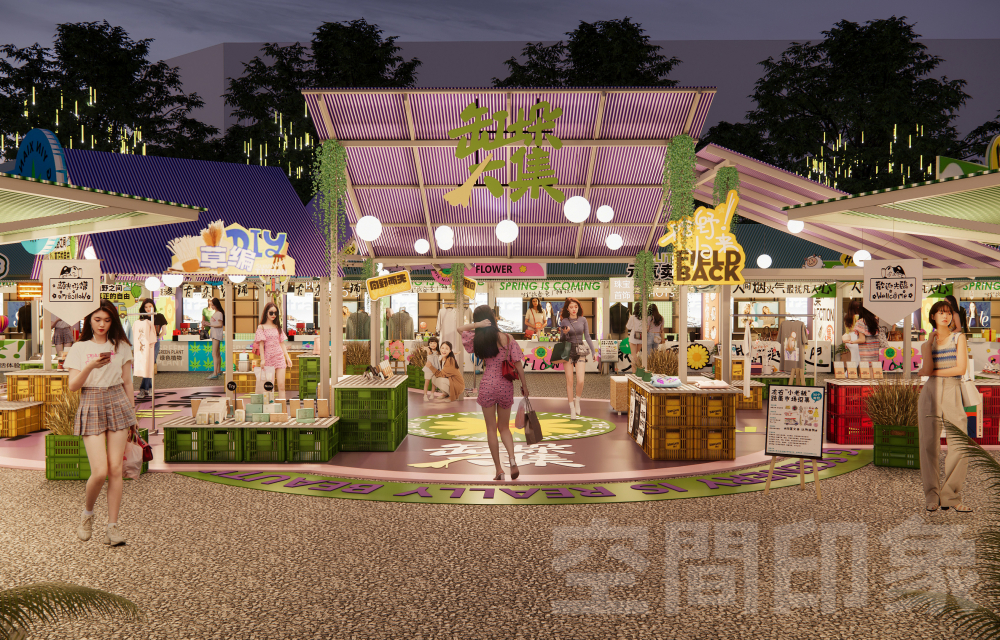在空间条件受限、场景设置面临诸多约束时,材料的巧妙运用便成为破局的关键。与其强加结构,不如尊重原生空间的既有肌理——摒弃厚重传统的装修方式,转而采用脚手架、瓦楞板、防水帆布等轻盈、可移动、易组装的轻盈材料,让商业的存在显得自然而不突兀,延续场所原有的“野生”气息。
