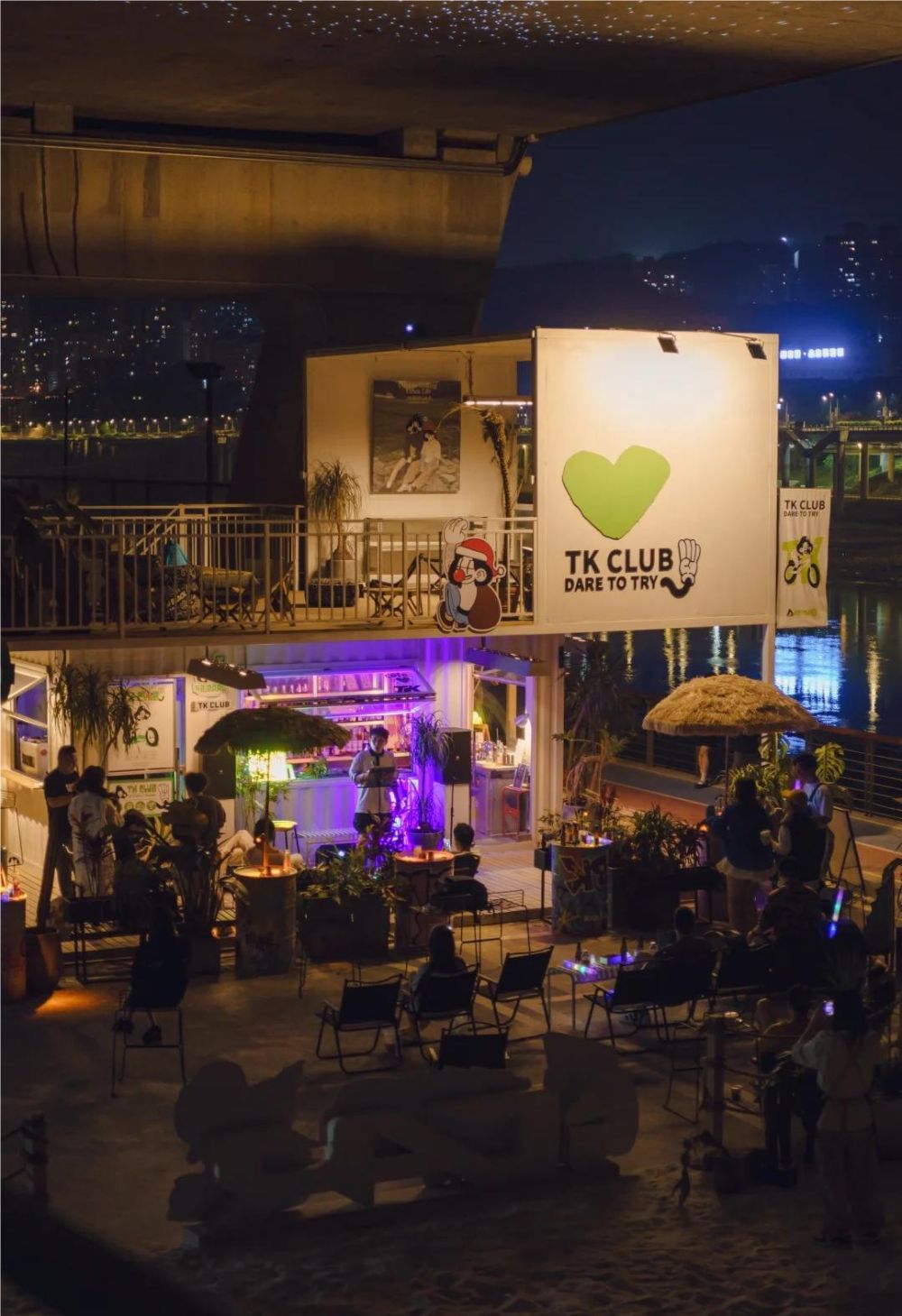 混搭折叠桌椅、竹凳、高脚凳等休憩家具,不一味追求整齐划一,而是随意错落安置,留出更多可供自由使用的空白区域。以“未完成”的姿态,使人与人之间的相遇留出了余地,成为感受生活、放松身心的角落。