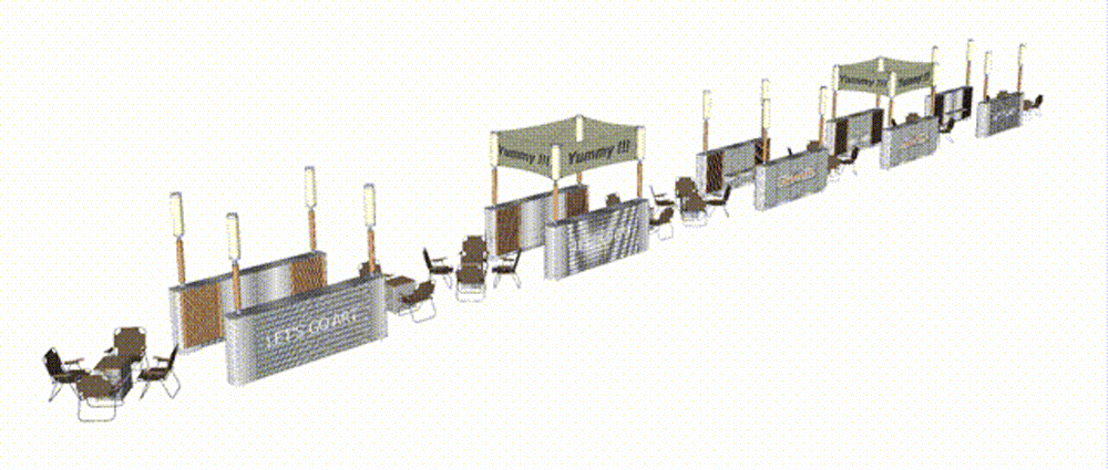 我们保留原生市井烟火气,让城市温情以更美好、更有序的方式回归。采用统一模块化框架,把零散摊贩整合成整齐的市集矩阵。