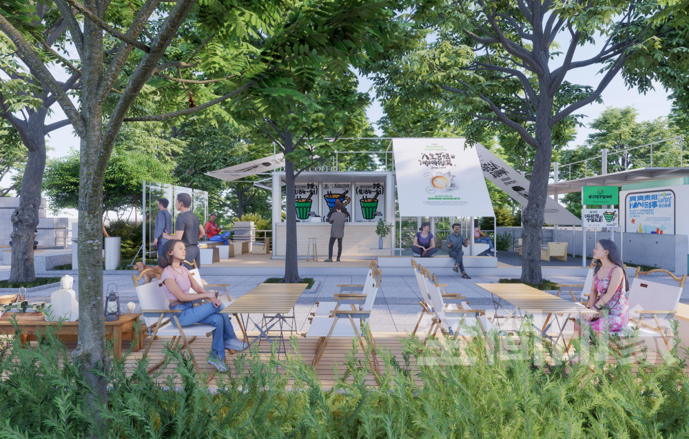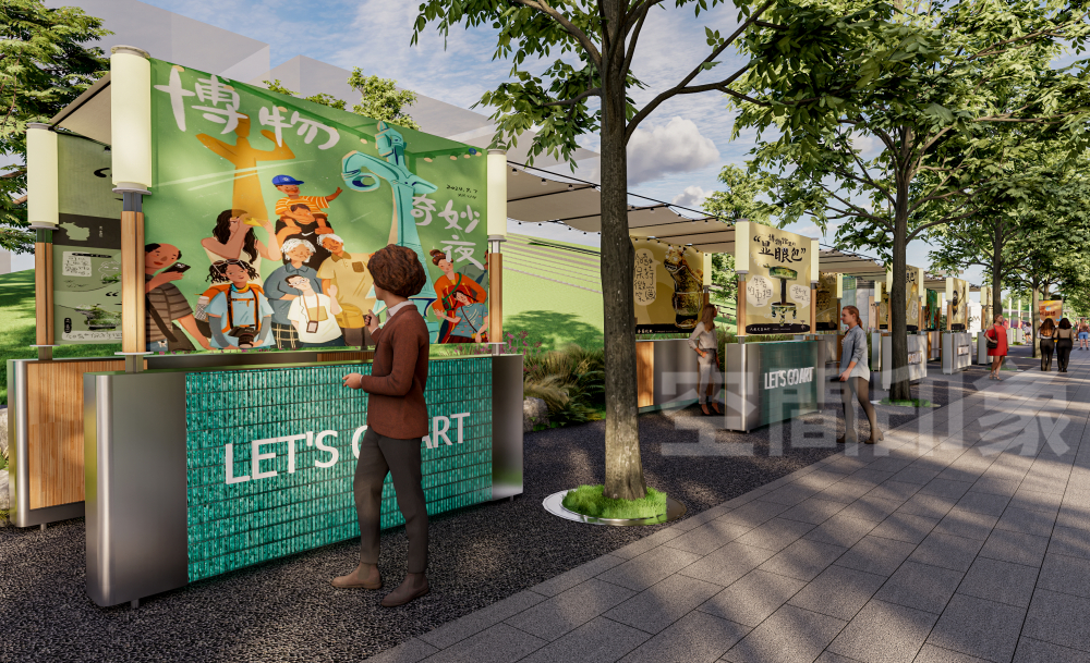 商亭轻盈通透,与自然、文化装置和谐共生,同时兼具“移动展柜”的功能,既承载餐饮、零售等基础商业功能,又可快速切换为艺术装置、快闪展览的载体,让街区的文化属性与商业价值形成良性循环。