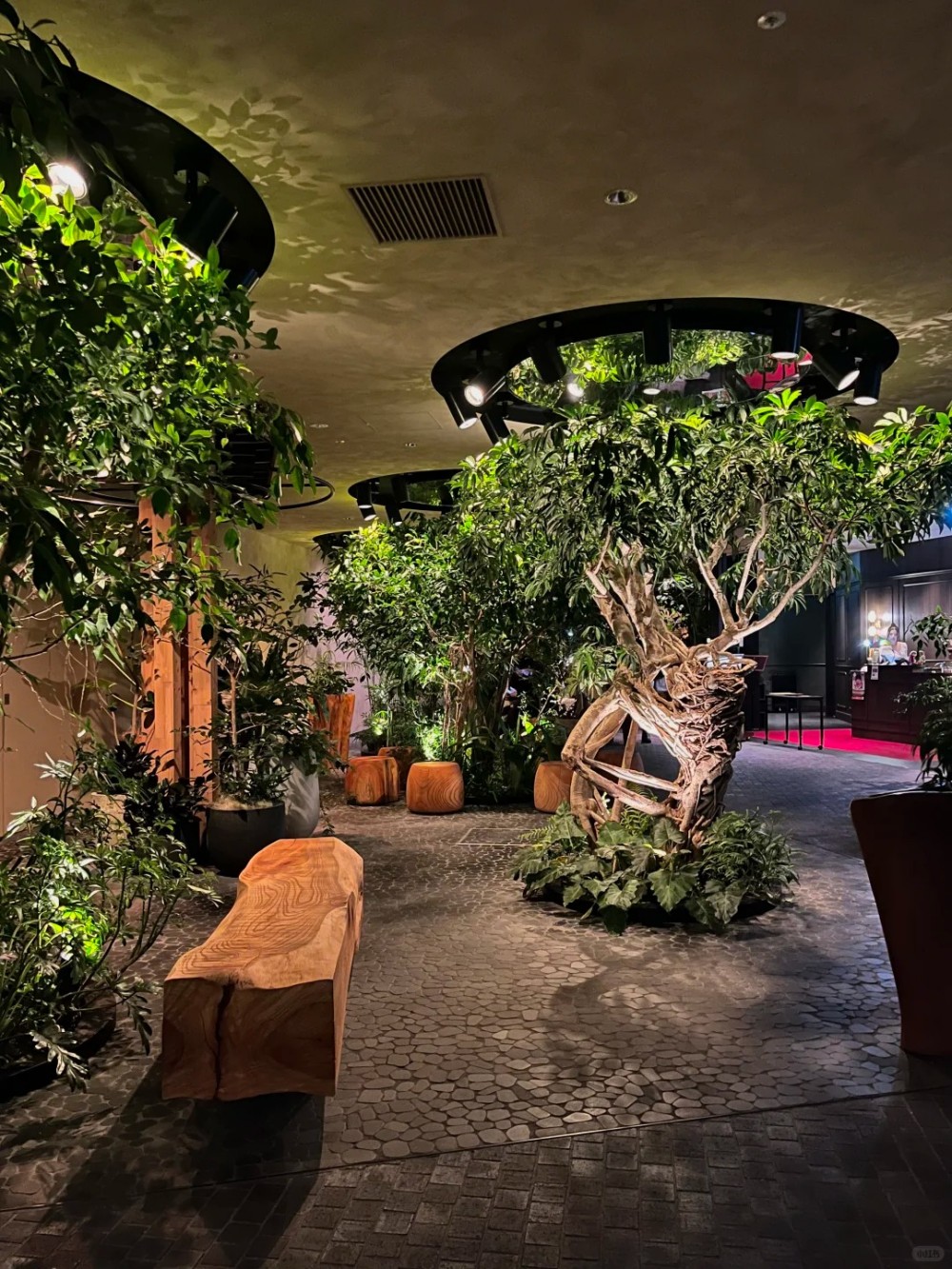 从“单体盆栽”到“微型生态群落”,摒弃传统的整齐划一的盆花,改用苔藓、蕨类、枯木与灌木高低错落搭配,在畸零角落或楼梯下方打造“微型生态圈”,这种粗野、自然的生态群落,往往比精致的修剪更能体现高级的调性,在移步异景中,消费者不知不觉拉长了停留时间,空间的品质感也随之提升。点击下方图片查看项目内容