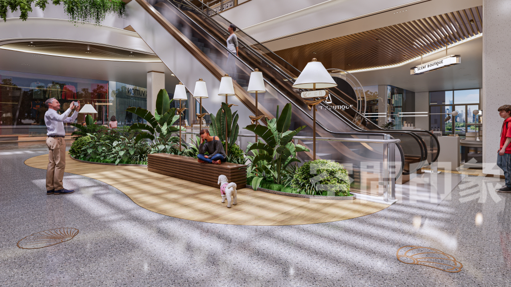 很多时候,商场里巨大的中庭或大面积的留白会让人产生空旷与冷清的错觉,“微景观”的出现,便成为了重塑空间焦点的绝佳手法。